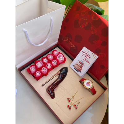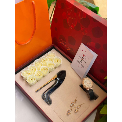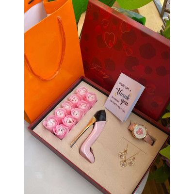 Delight her with a beautiful ladies’ gift package at KES 3,999 – includes perfume, necklace, watch, earrings, preserved petals, card & bag. Perfect for birthdays, appreciation, apologies, or warm wishes