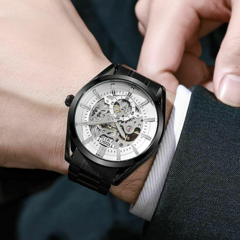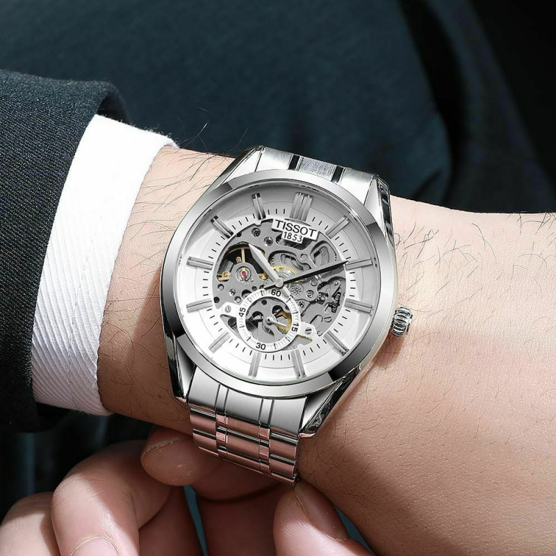 Shop the Tissot 1853 Men’s Automatic Watch at the best prices in Kenya — 12-hour dial, steel case, metal strap, transparent back, and premium automatic movement for enduring sophistication.
